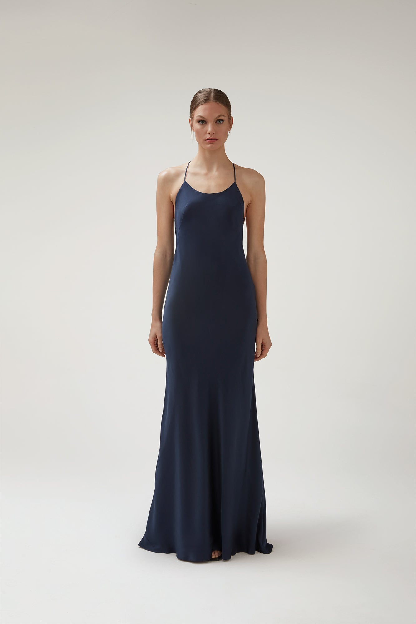 A classic silk slip gown with cross-straps that drapes effortlessly for a timeless and elegant look. The dress is fully lined in equally luxurious silk to add comfort and confidence.